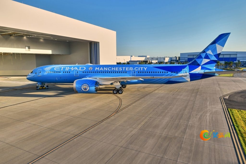 阿提哈德航空21日迎来了一架全新波音787-9梦幻客机的面世,该飞机采用曼城足球俱乐部特别涂装设计,这一举措充分彰显了阿提哈德航空与该俱乐部的为人称道的合作伙伴关系。