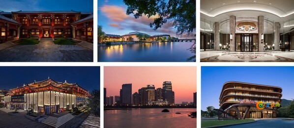 图片从左到右依次为:北京华尔道夫酒店、上海松江广富林希尔顿酒店、广州越秀宾馆,希尔顿格芮精选酒店、西安曲江希尔顿嘉悦里酒店、泉州泉商希尔顿酒店、景德镇陶源谷希尔顿花园酒店