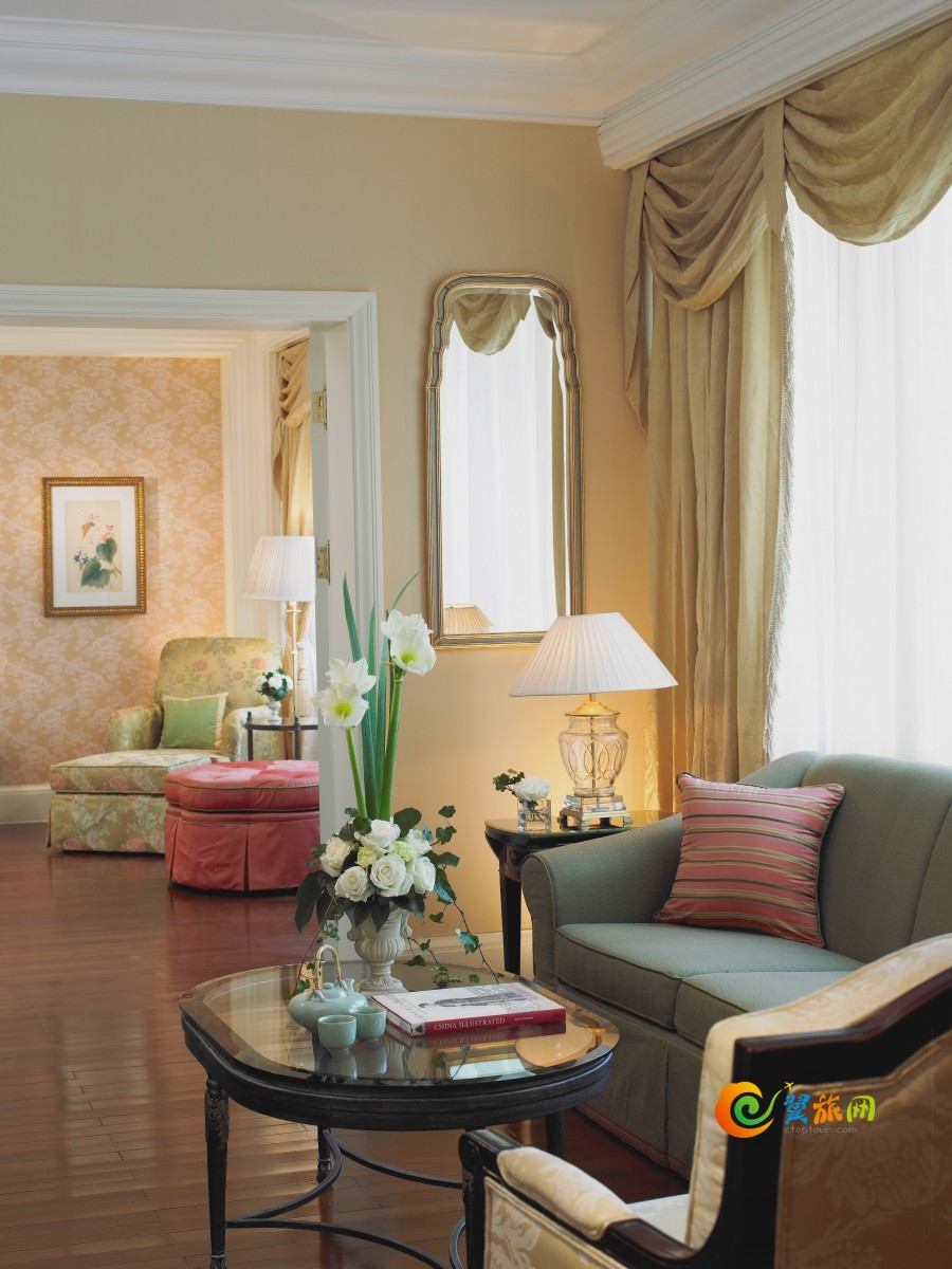 客房精美的欧式装修风格和质地上好的床上用品,为宾客带来典雅烂漫的宁静感受。延续英伦庄园风格,品质一流的古典式家具贴切的融合在先进的科技设备中,包括配备iPod接口的高科技平面电视和无线上网等。房间的艺术风格同时吸取了西方和东方元素精华,和谐统一。特别安装的高端空气净化系统,合理利用过滤方法实现除尘净化三部曲。