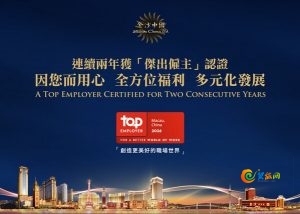 金沙中国有限公司连续第二年获得全球人力资源战略认证权威”杰出雇主调研机构”(Top E…